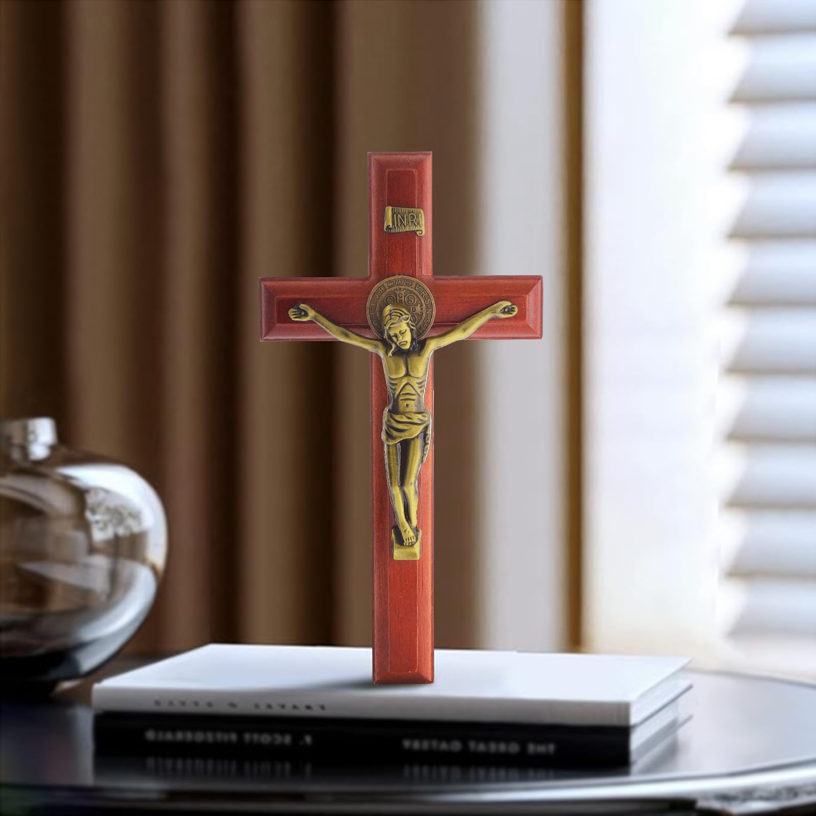 - Handmade Craftsmanship – This Catholic crucifix wall cross is sturdy and made to last. The cross is carved from solid hardwood; Jesus crucifix is made of bronze plated alloy, the religious and classic design will make it a wonderful decoration for your home.
