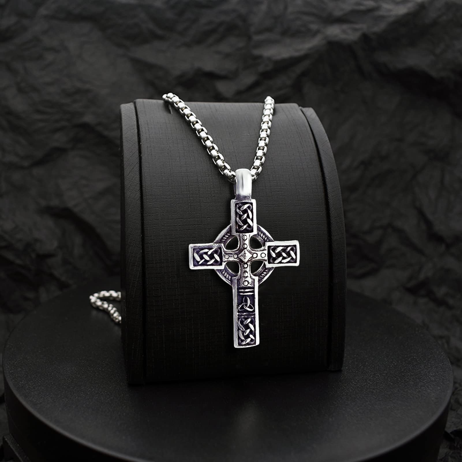 • STYLE: The christian cross is not only a religious symbol, but also can be worn as a fashion statement piece; Its classic appearance makes the cross symbol versatile and ageless, display your faith with this vintage celtic knot crucifix cross pendant necklace