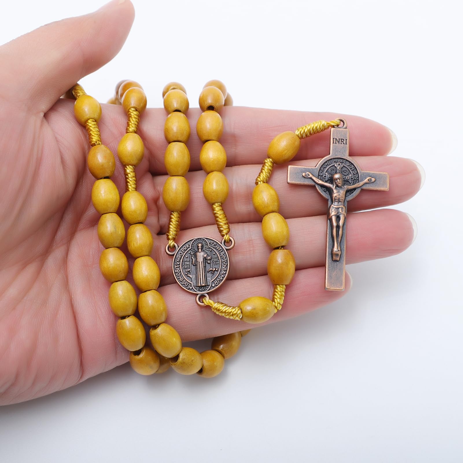 KOMI Handmade Wooden Catholic Rosaries, Rosary Beads Necklace Wood Christian Prayer Beads Catholic Christian Gift
